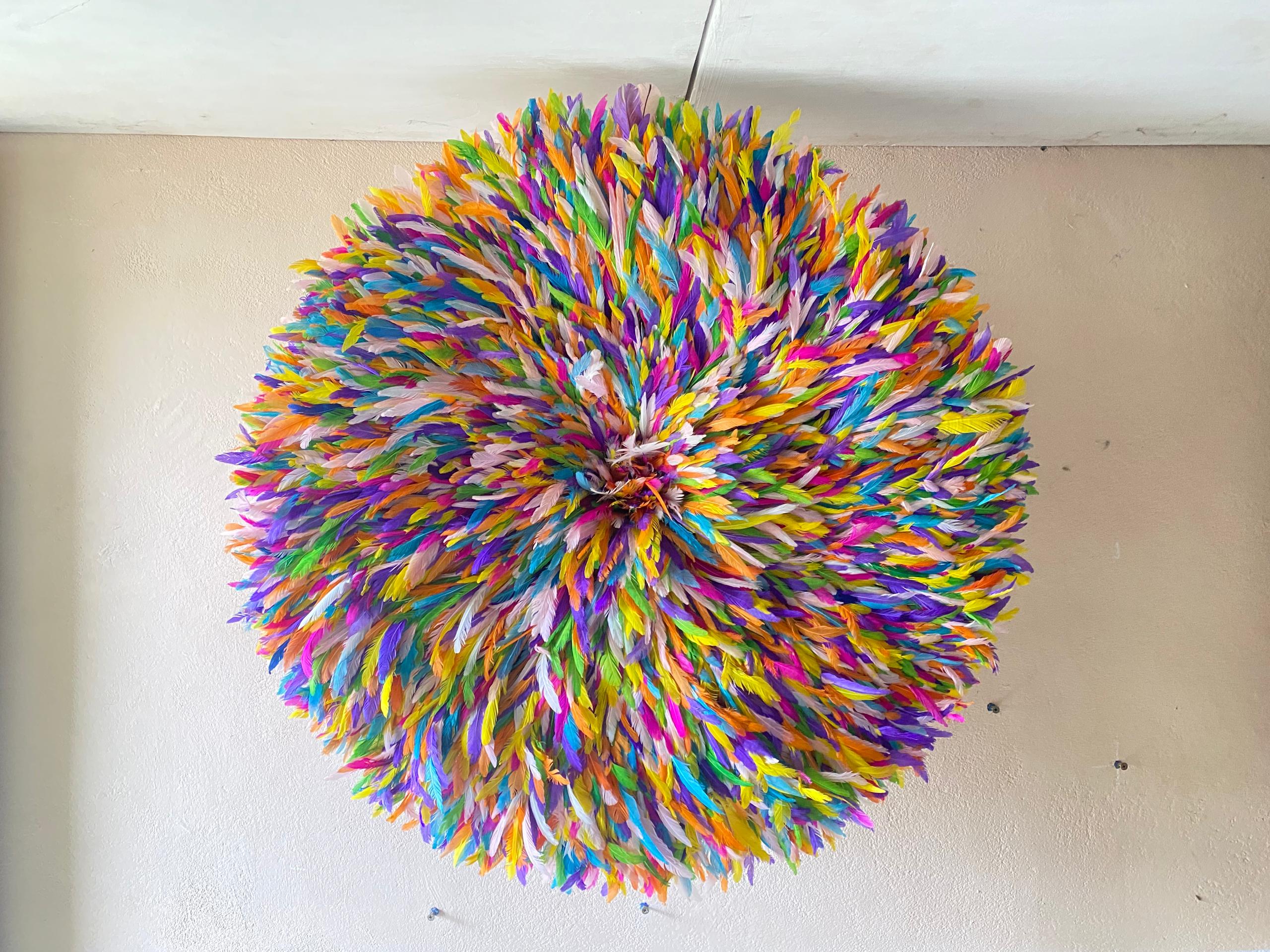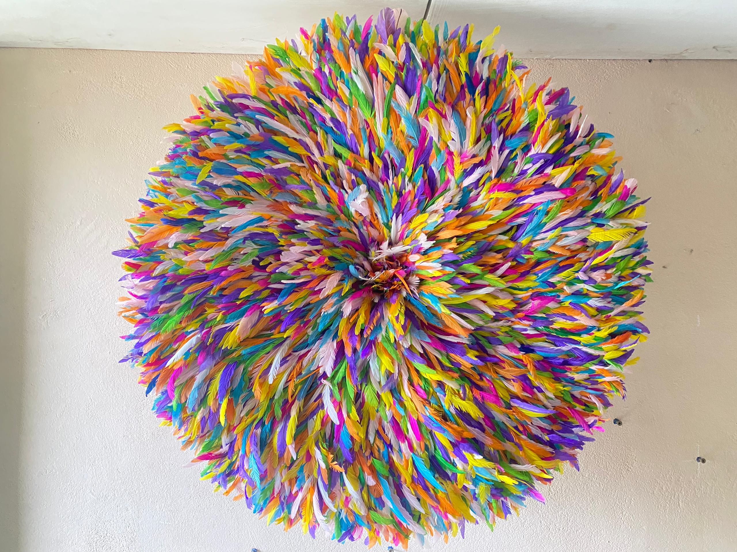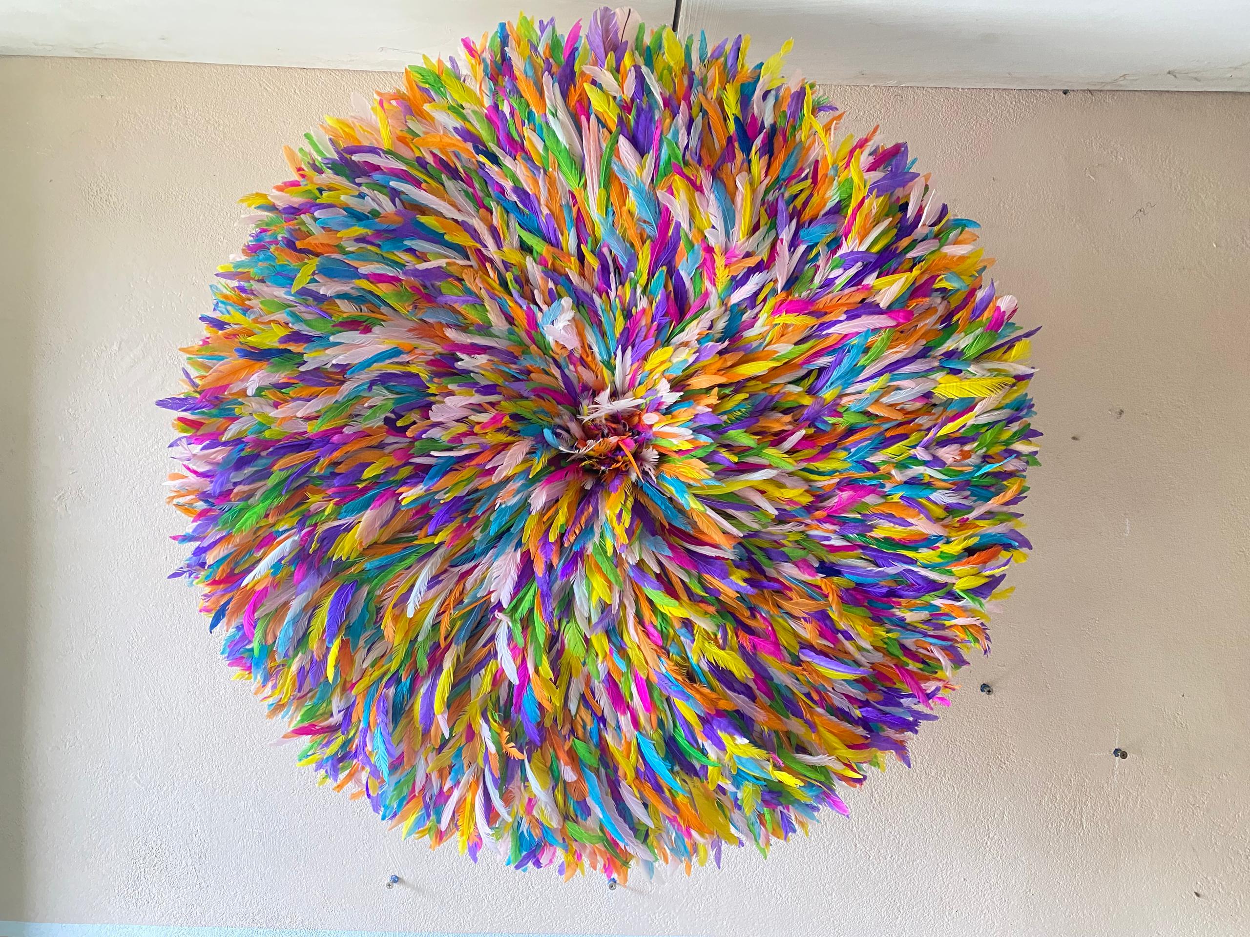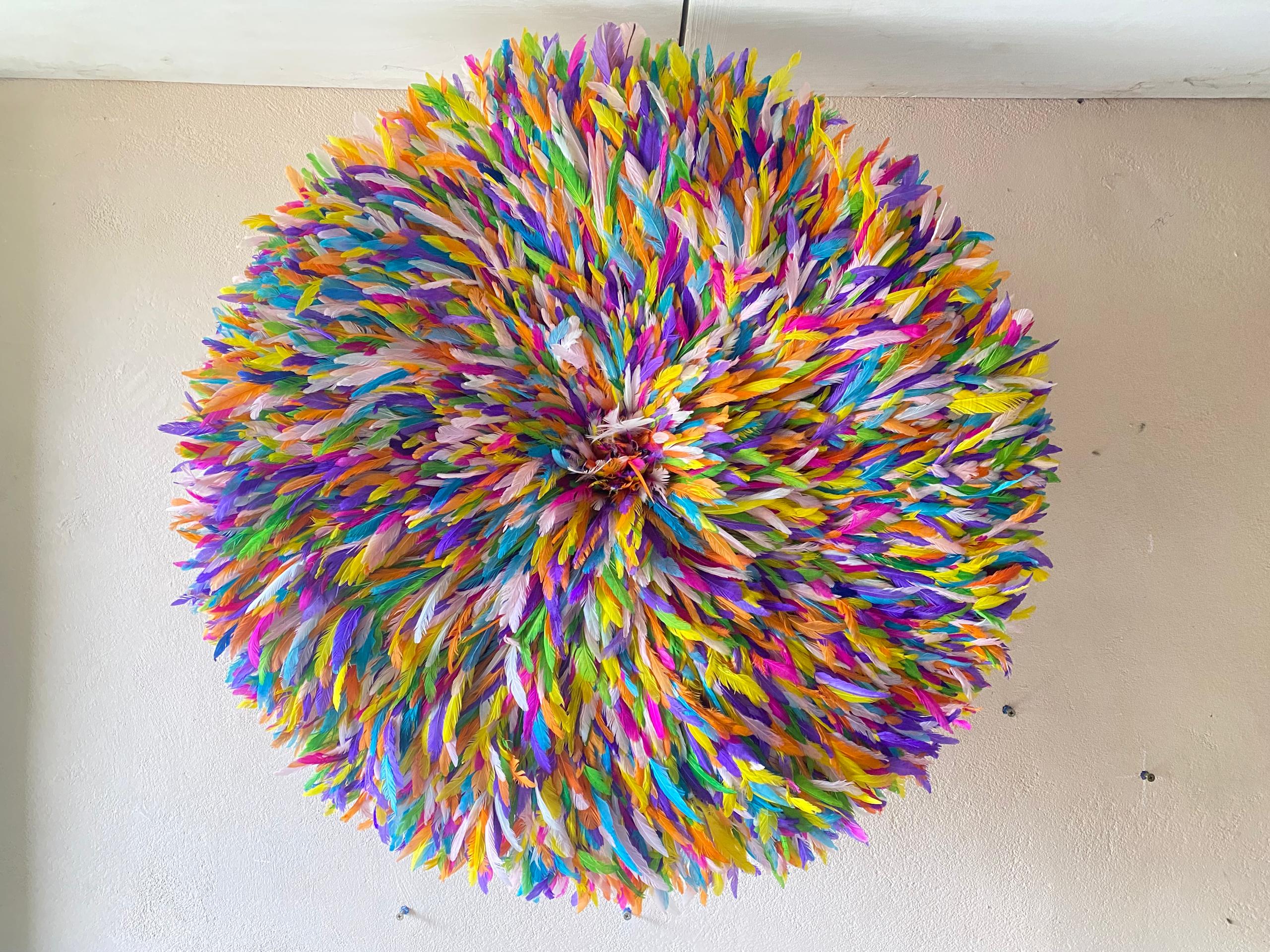 Multicolor Juju Hat Wall Hanging – Handmade African Feather Wall Décor