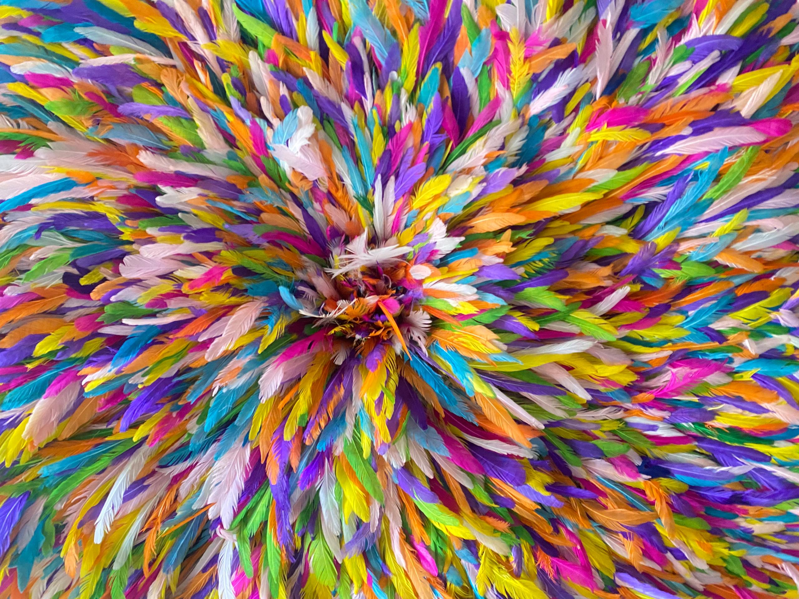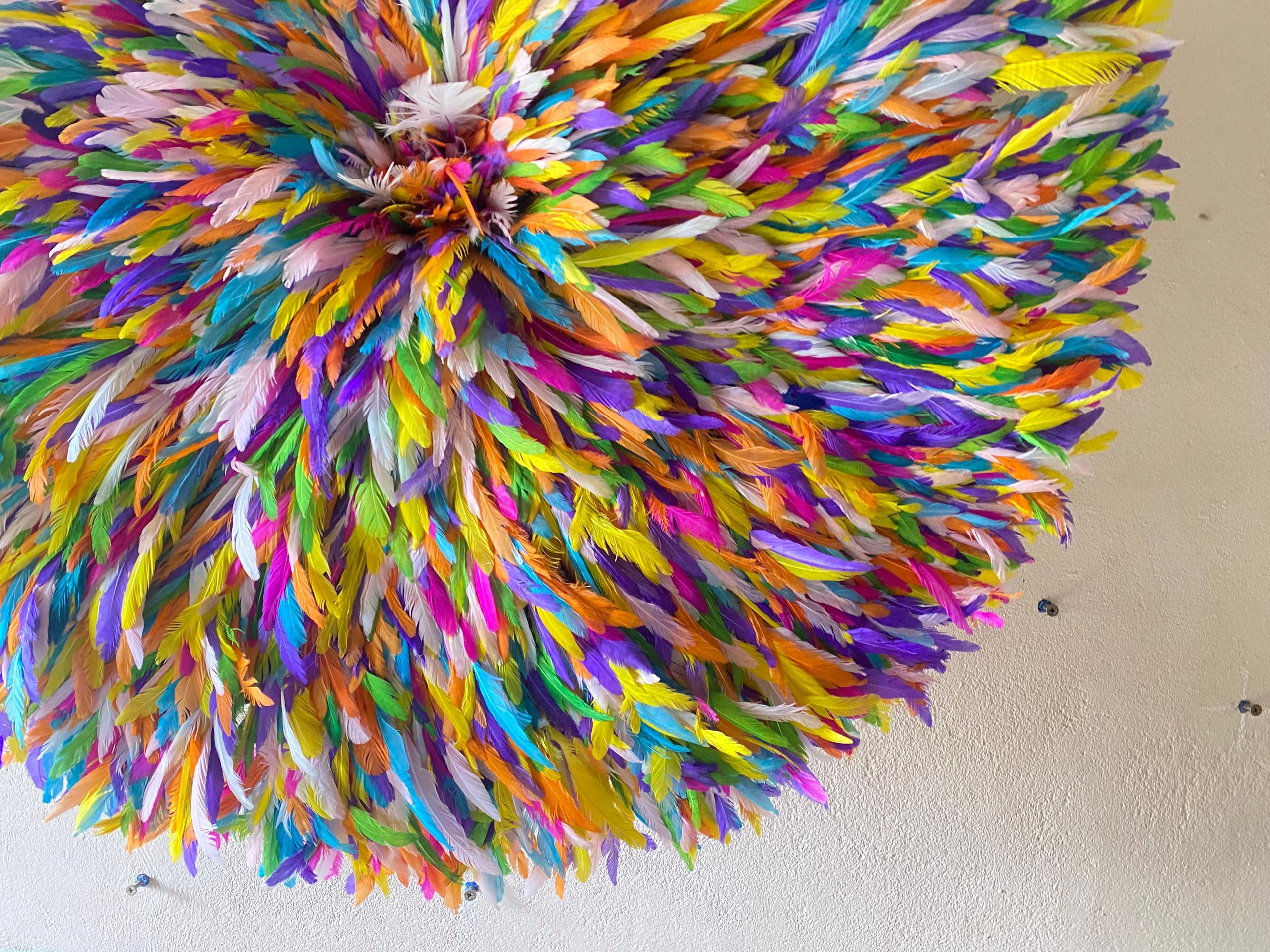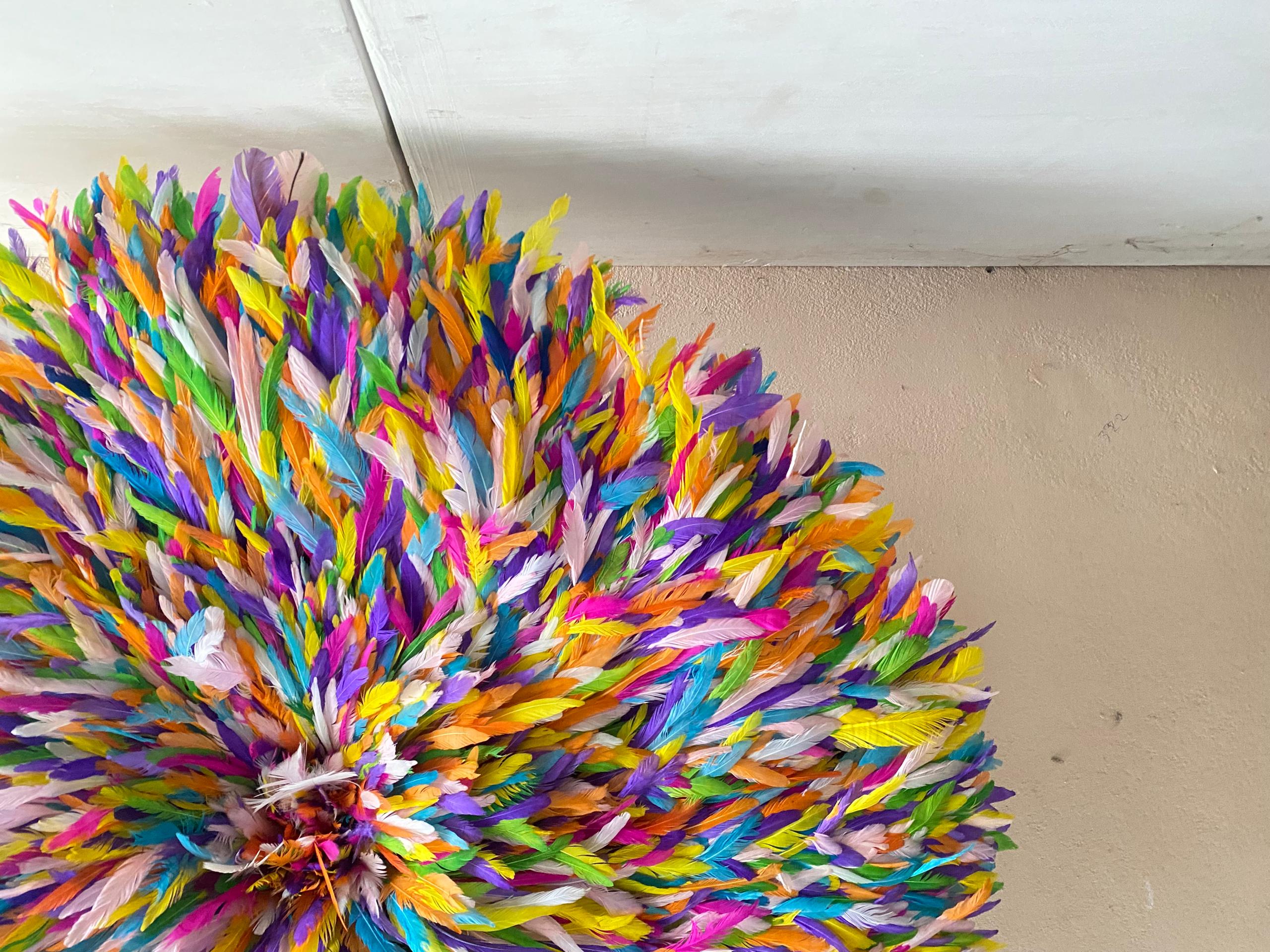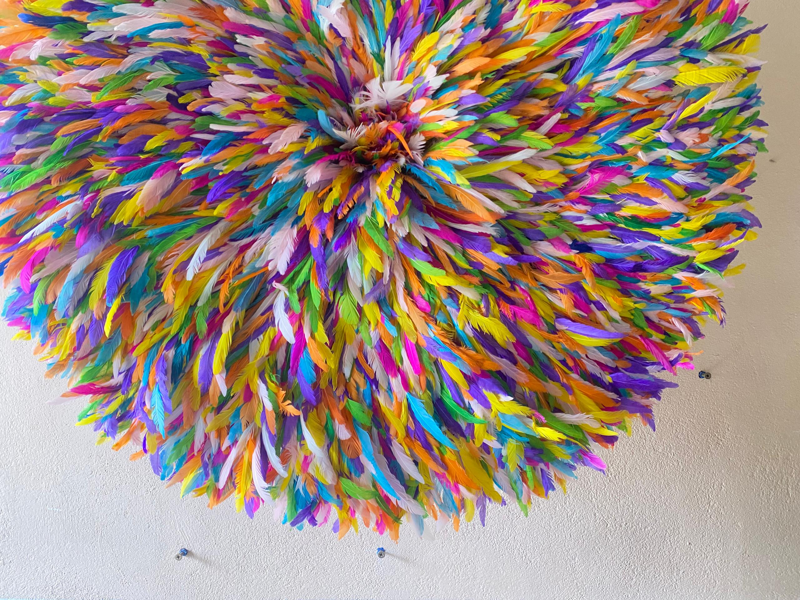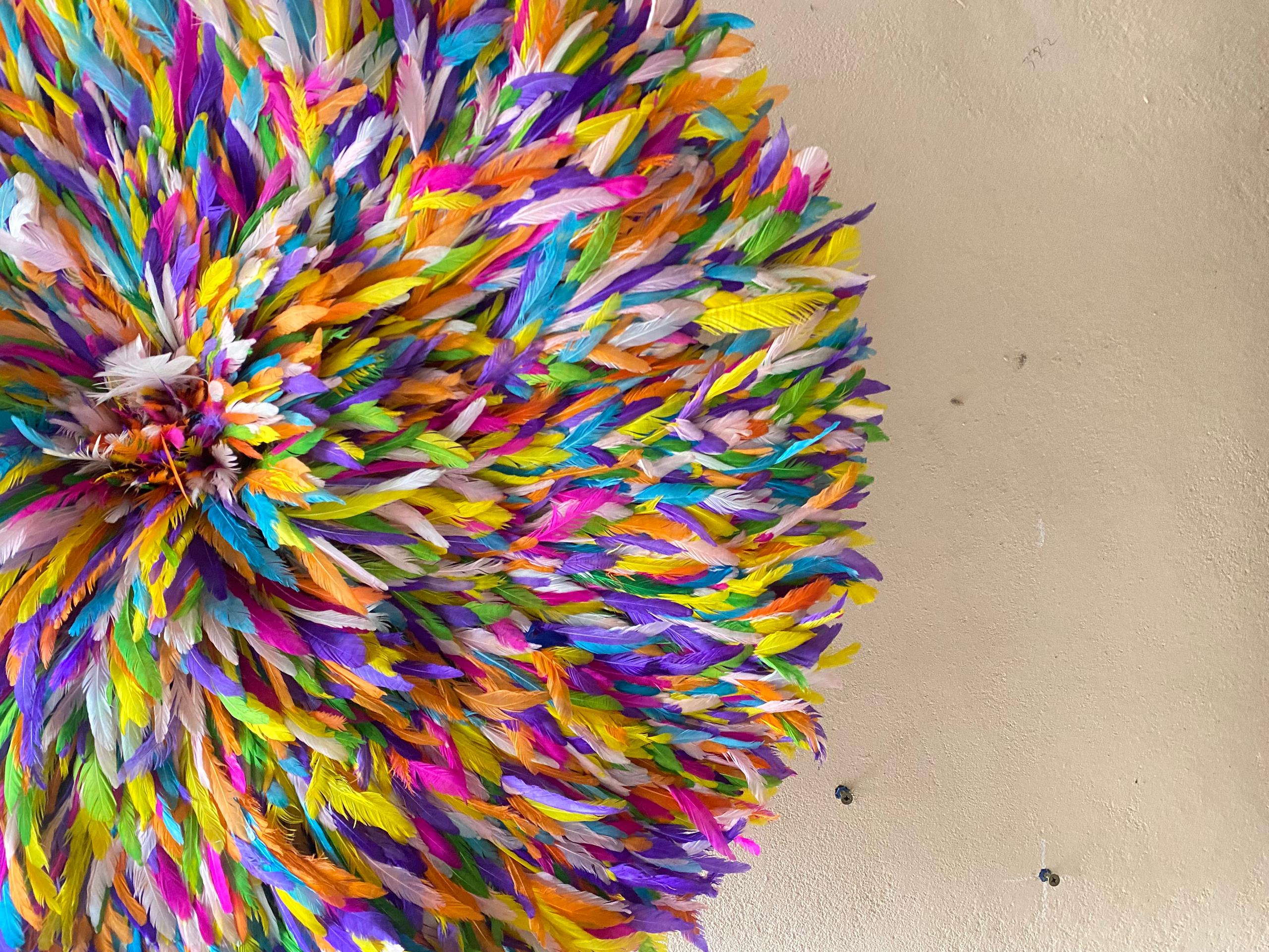 Multicolor Juju Hat Wall Hanging – Handmade African Feather Wall Décor