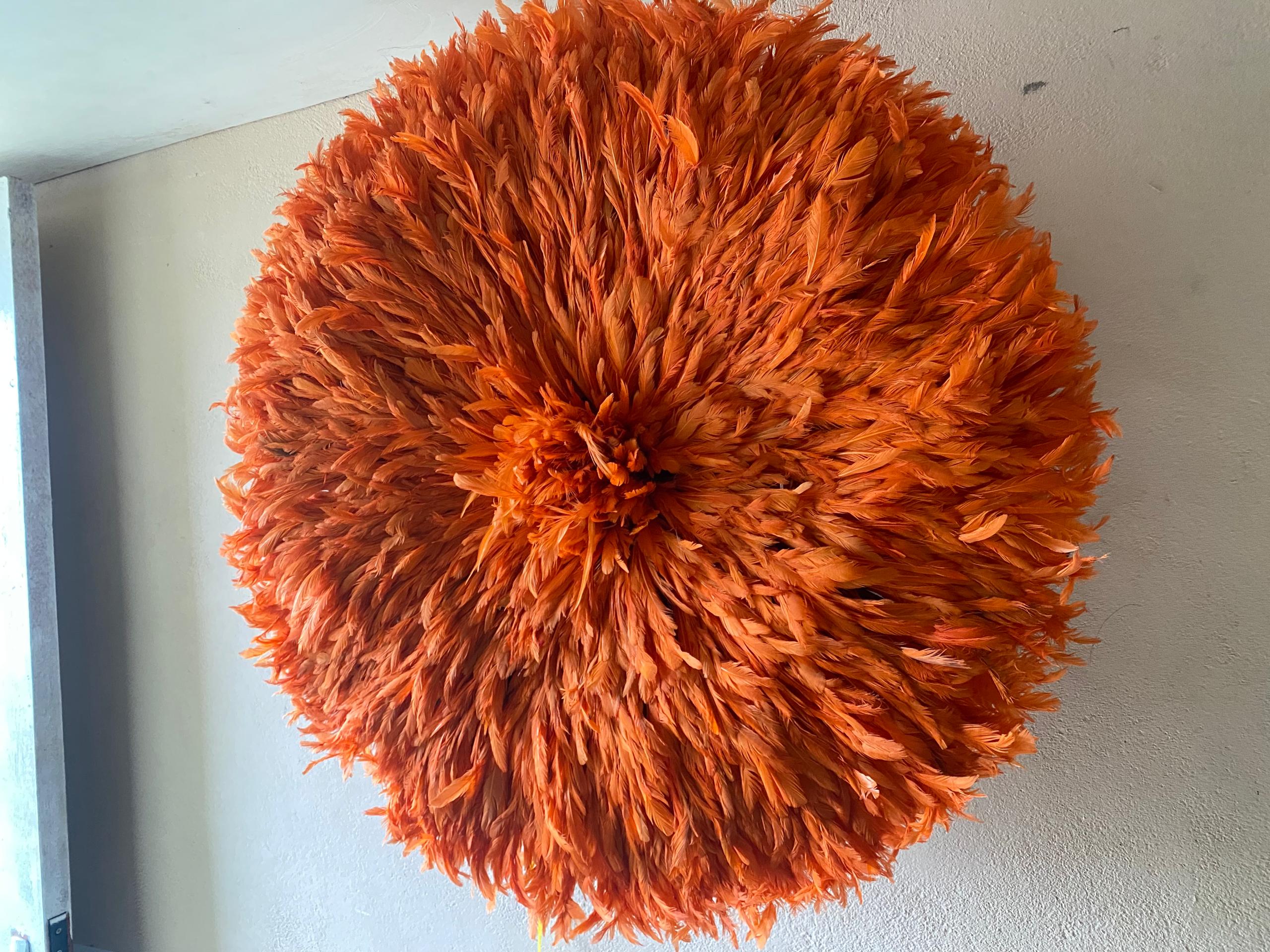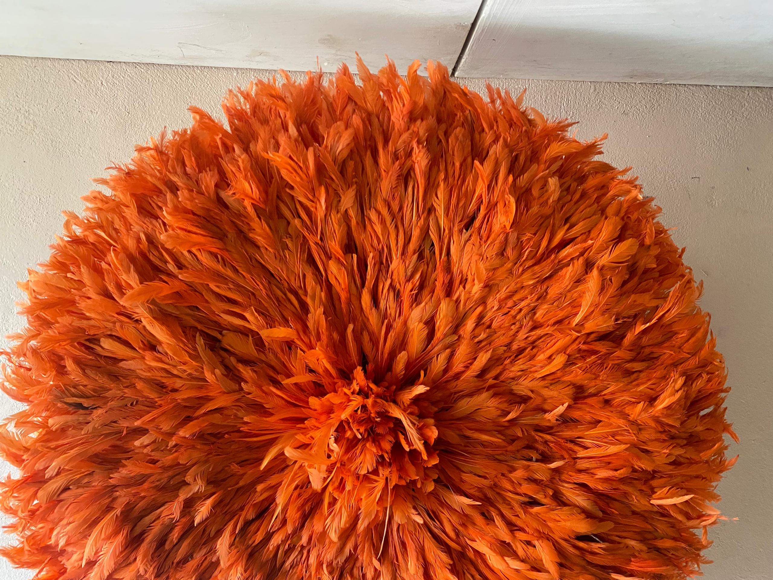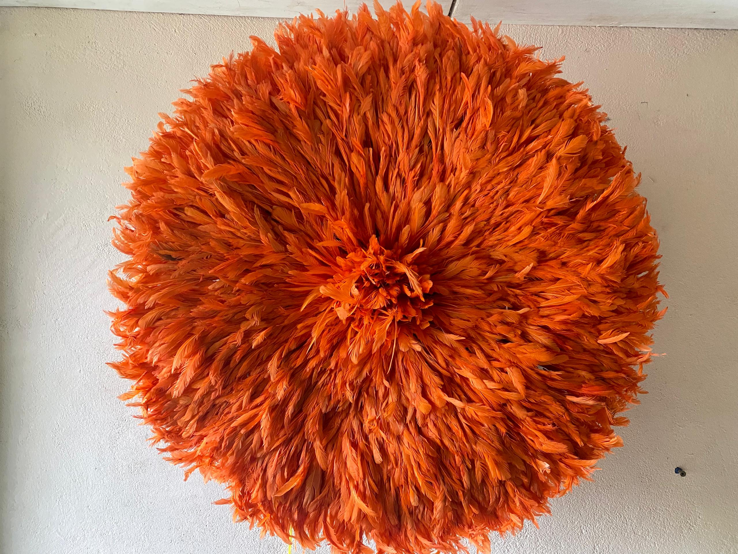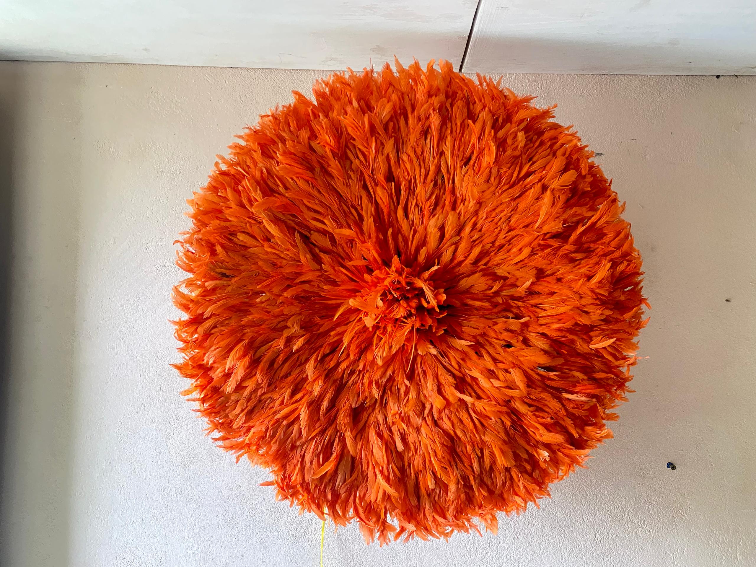 Orange Juju Hat Wall Décor – Handmade African Feather Wall Art